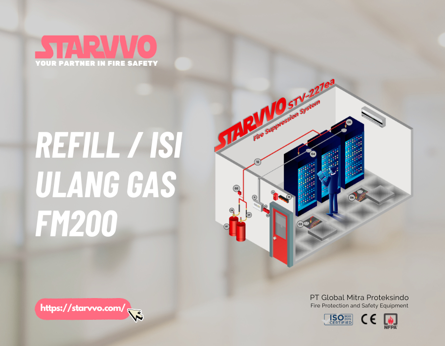 Sistem pemadam kebakaran adalah investasi penting untuk melindungi properti dan keselamatan Anda. Dengan memilih STARVVO sebagai mitra isi ulang gas FM200, Anda memastikan bahwa sistem Anda selalu dalam kondisi terbaik dan siap untuk melindungi saat dibutuhkan. Jangan tunggu hingga terlambat, pastikan sistem pemadam kebakaran Anda siap dengan menghubungi STARVVO hari ini untuk layanan isi ulang gas FM200 yang terpercaya.