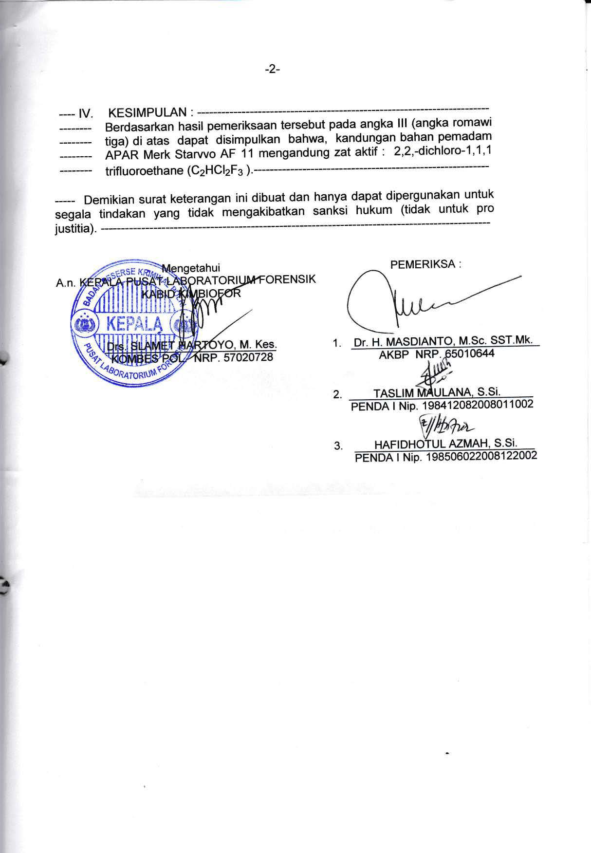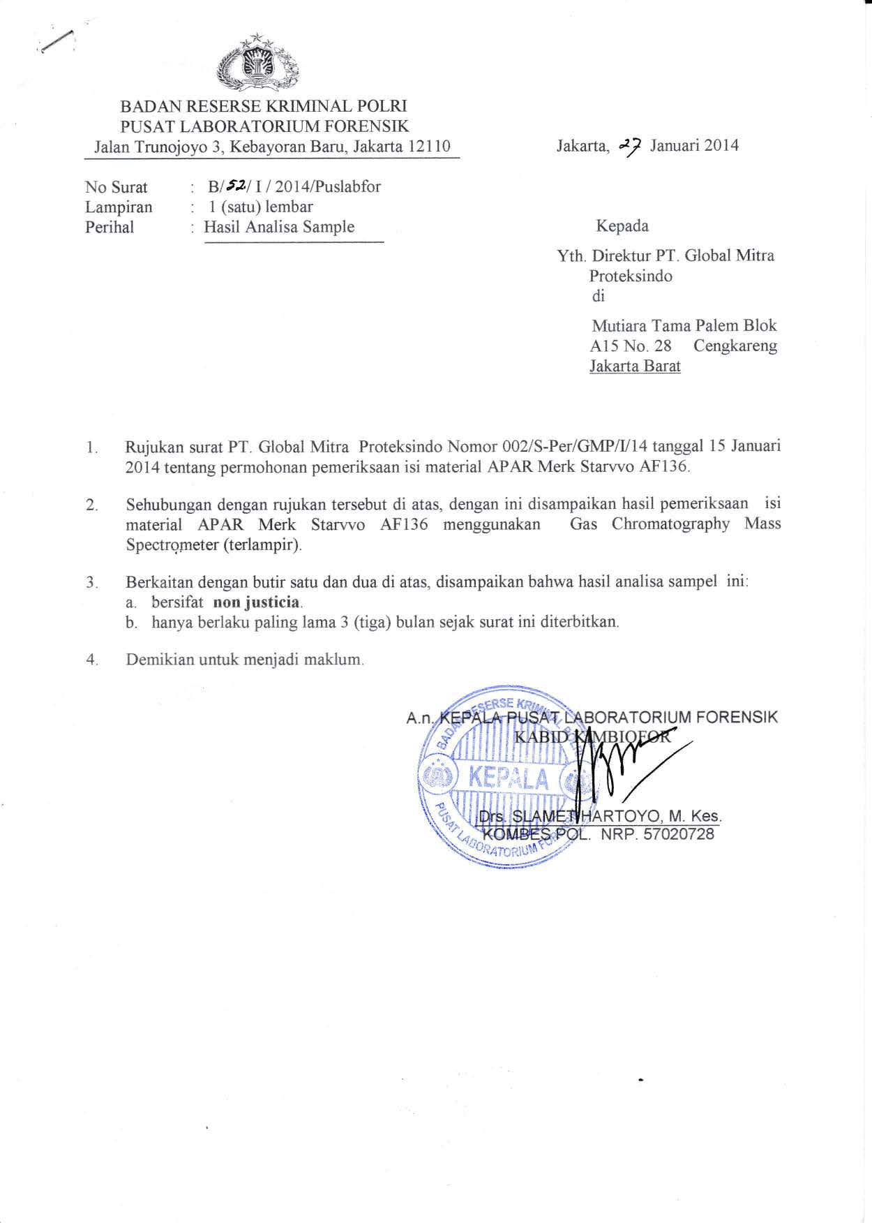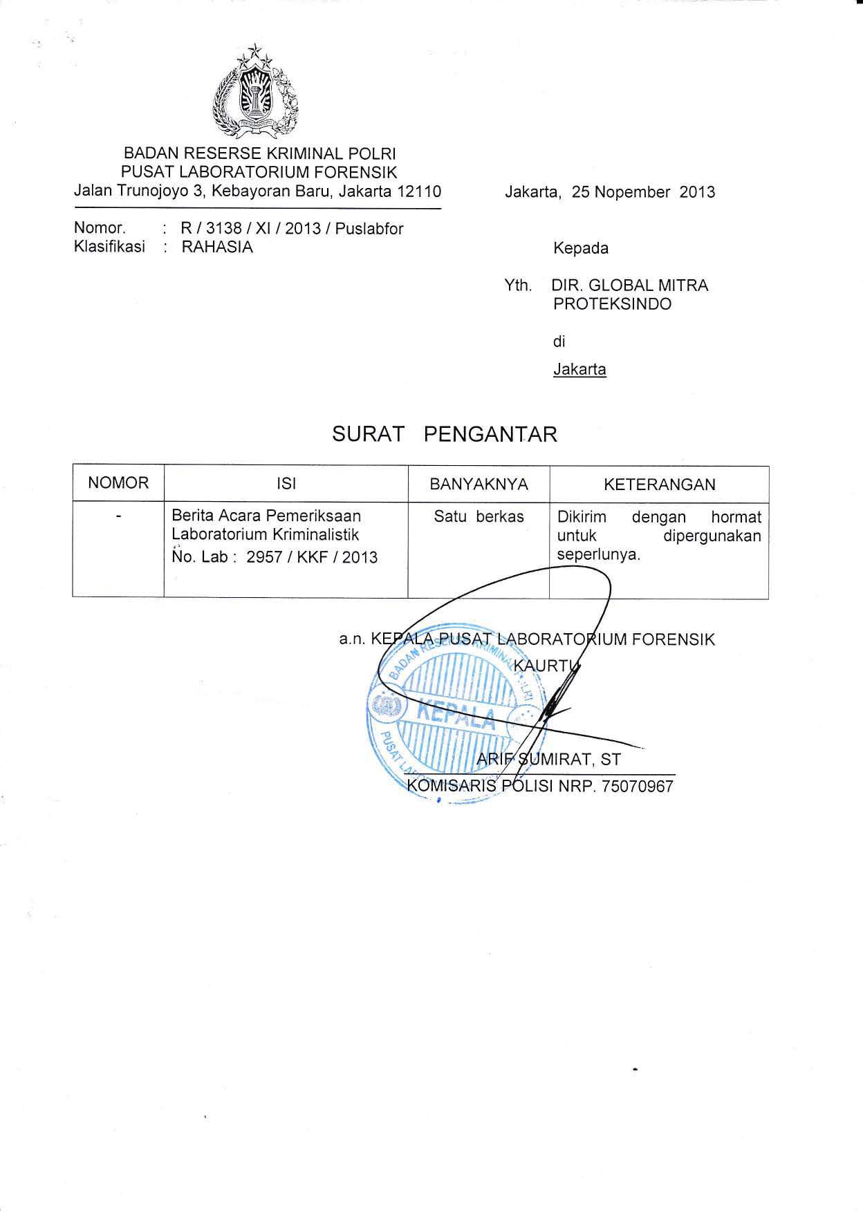 | Lab Forensik Mabes POLRI | Chat |