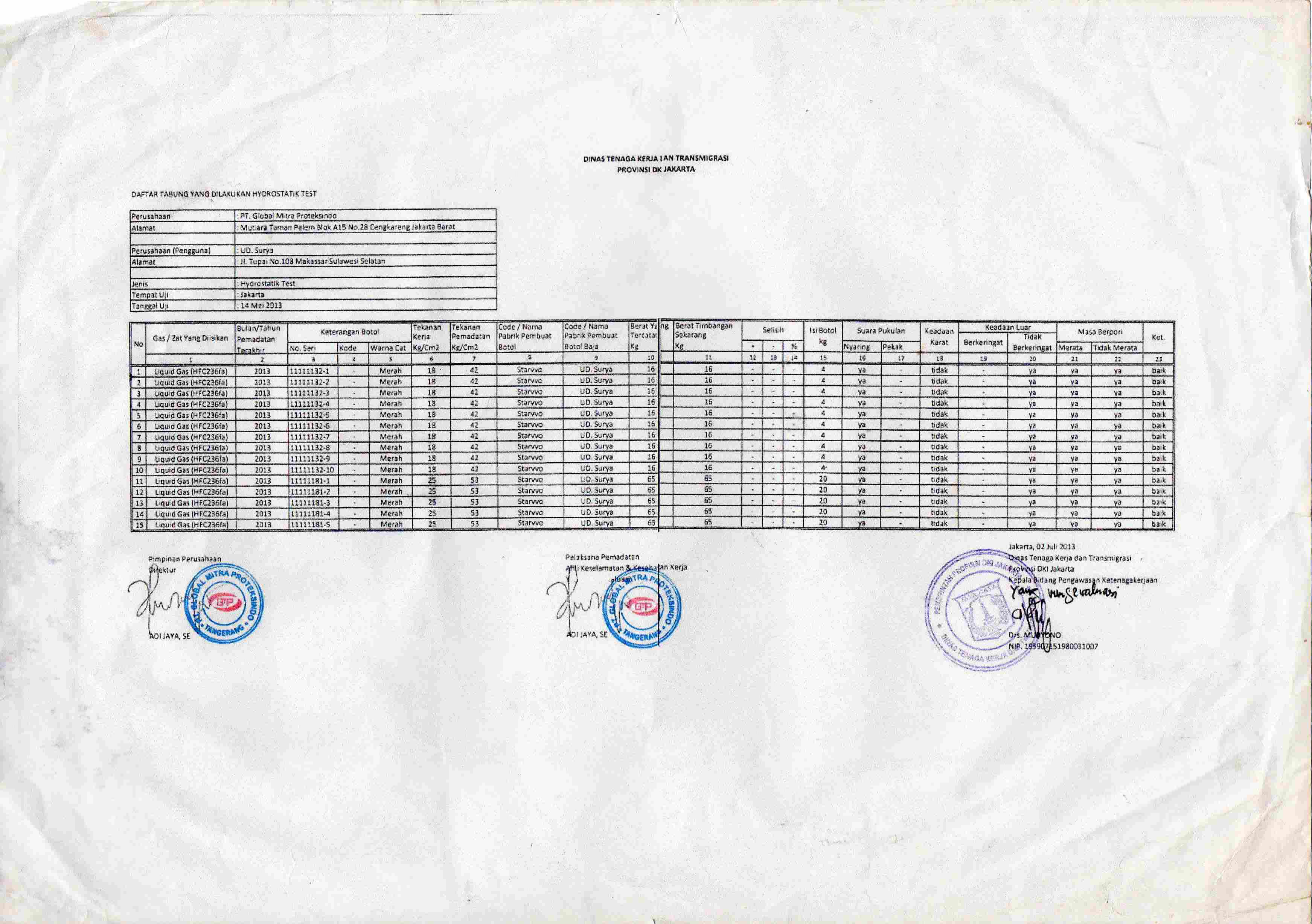 Pengujian dilakukan di lokasi pengujian milik pihak ketiga, yaitu Dinas Tenaga Kerja dan Transmigrasi Provinsi DKI Jakarta. Sehingga waktu pelaksanaan pengujian tidak dapat ditentukan secara pasti. Dengan alasan menunggu giliran antrian pengujian di Dinas tersebut.